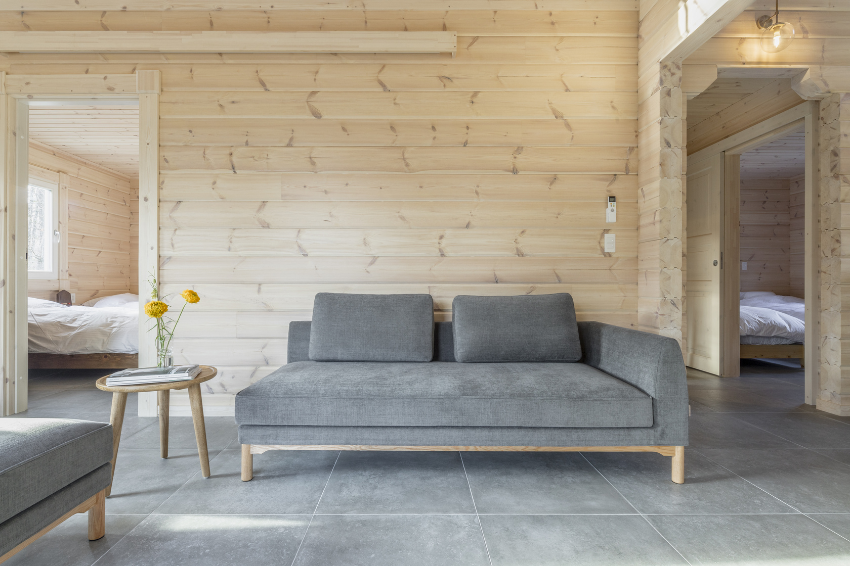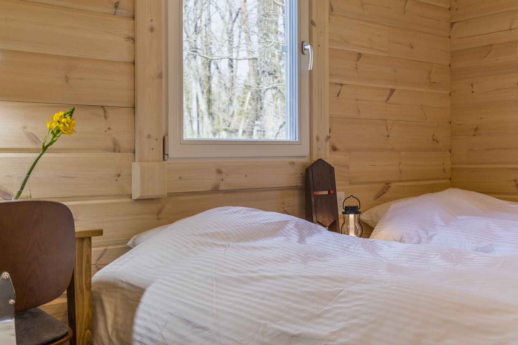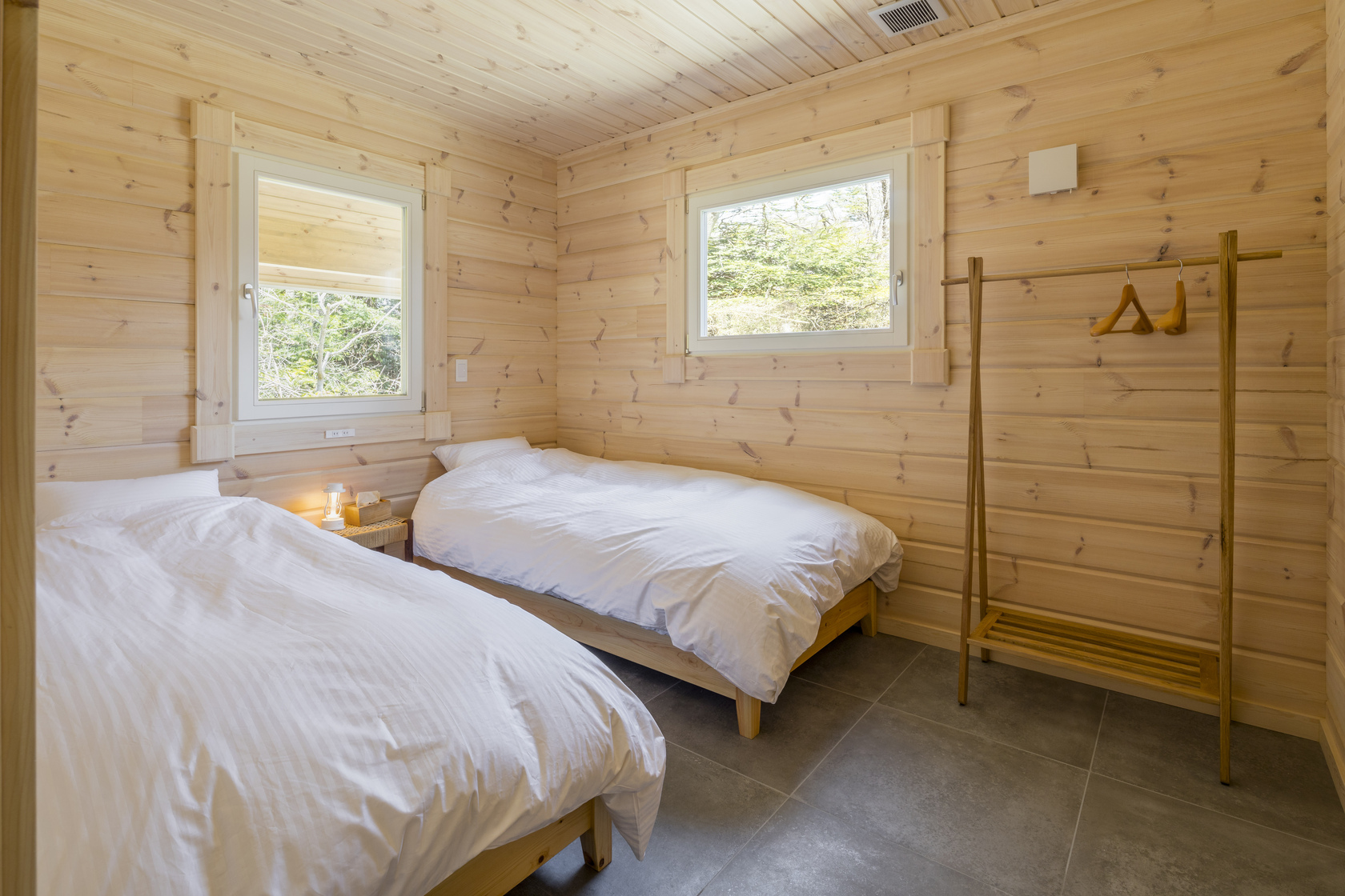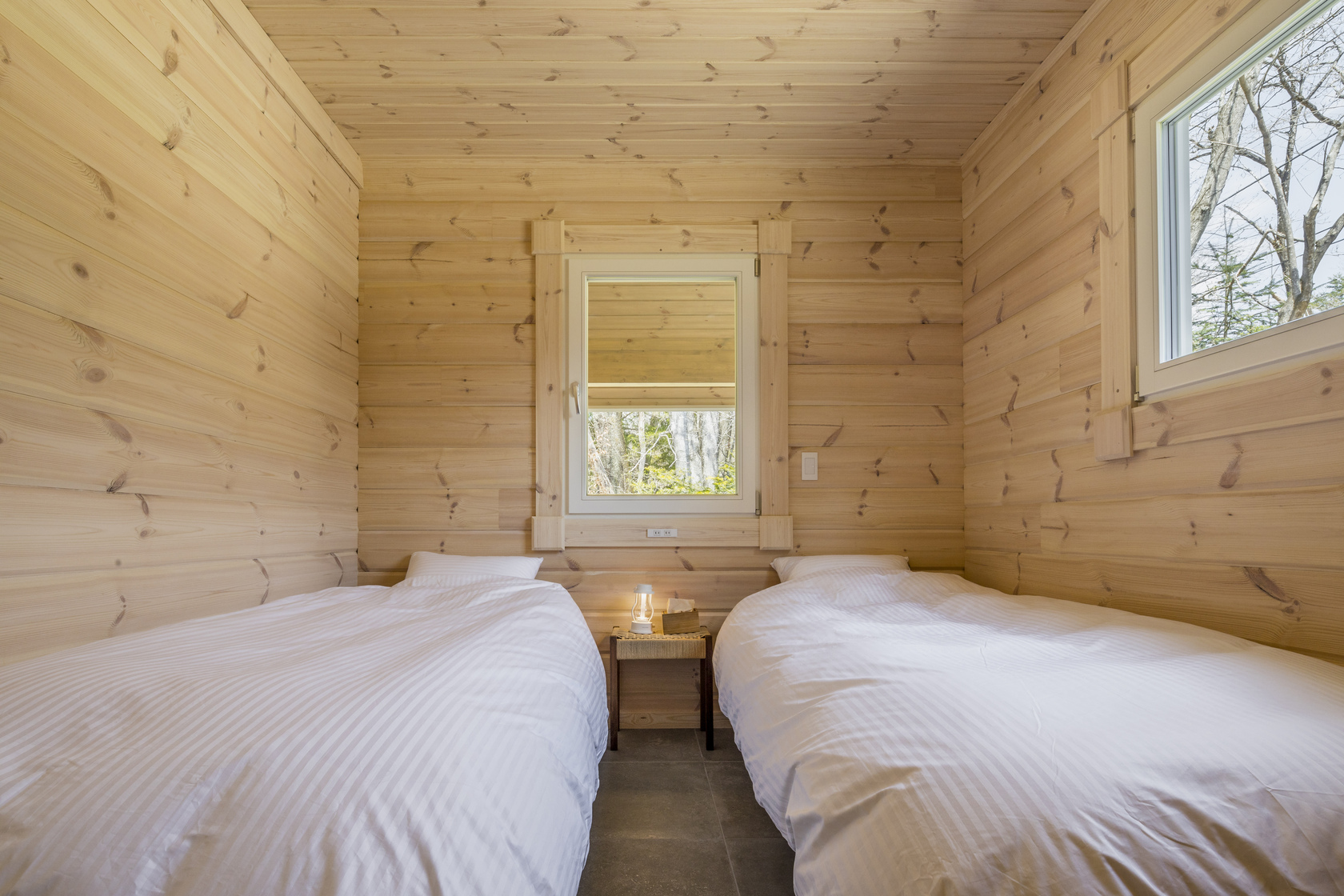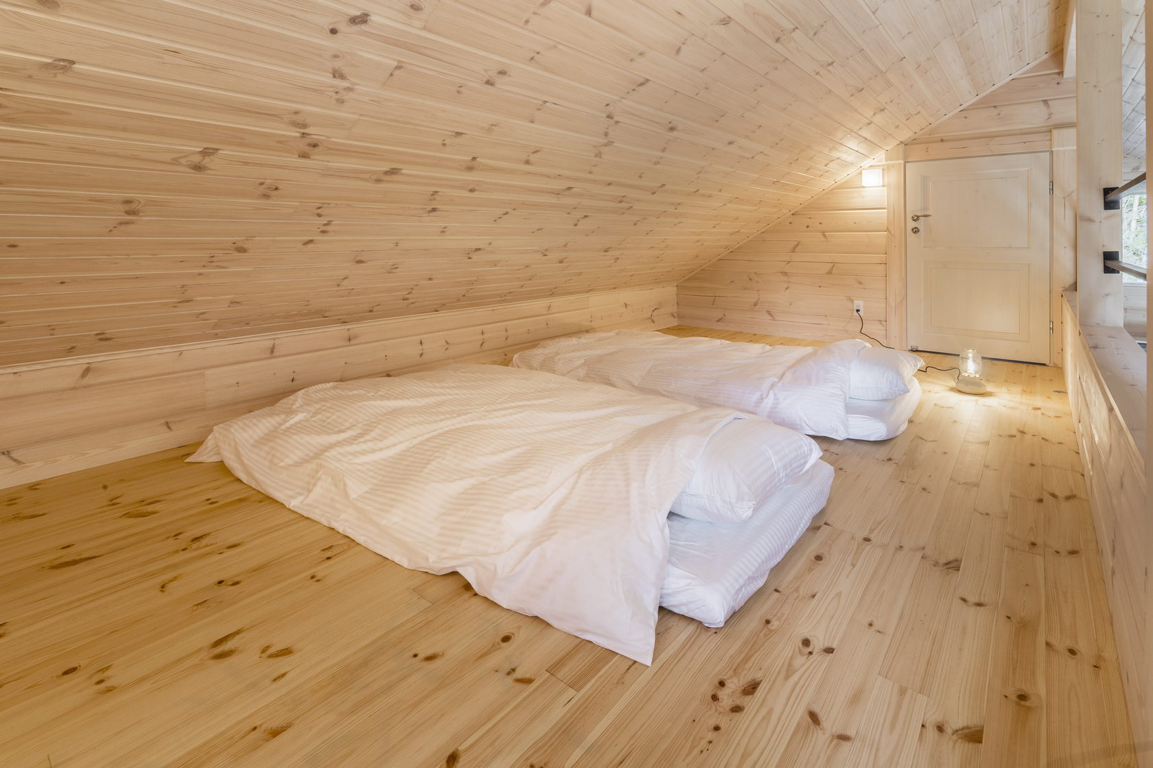 Two Japanese cypress single beds with German Emma Sleep mattresses.