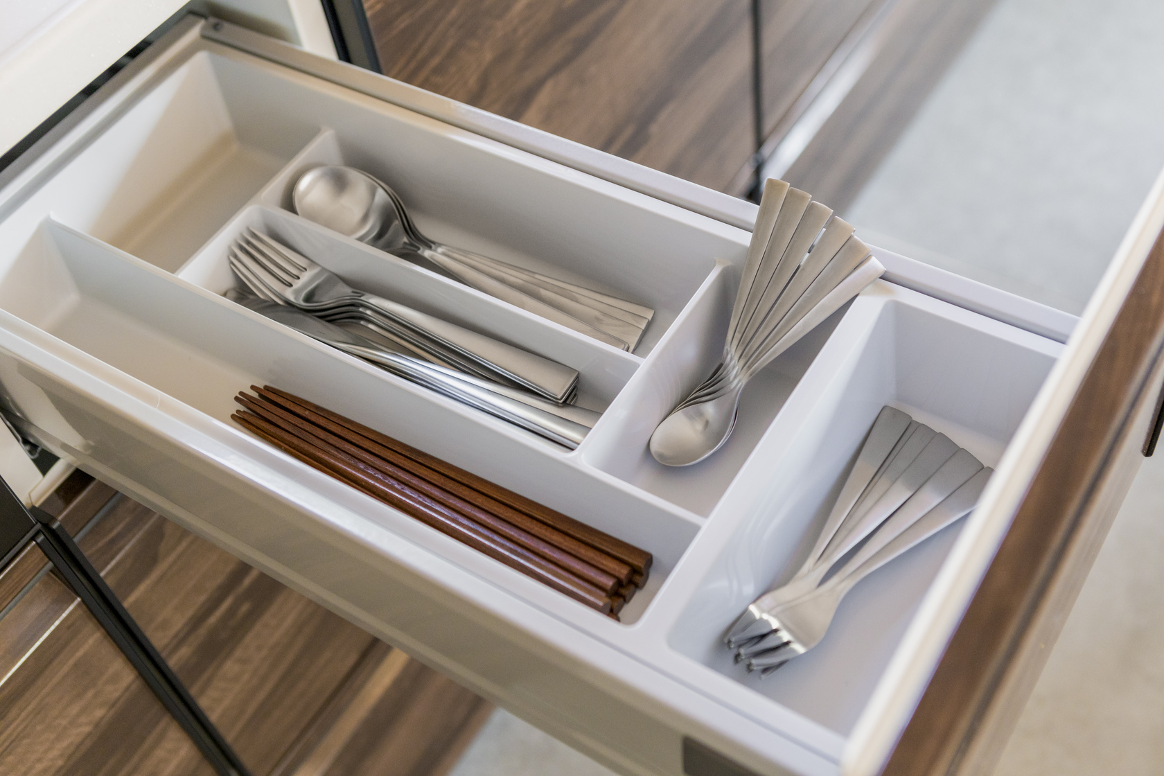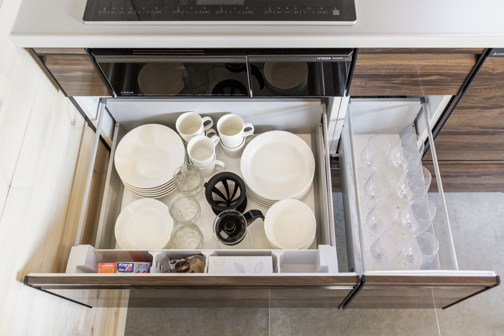 清潔で堅牢なホーロー製キッチンを採用。食洗機も搭載しています。