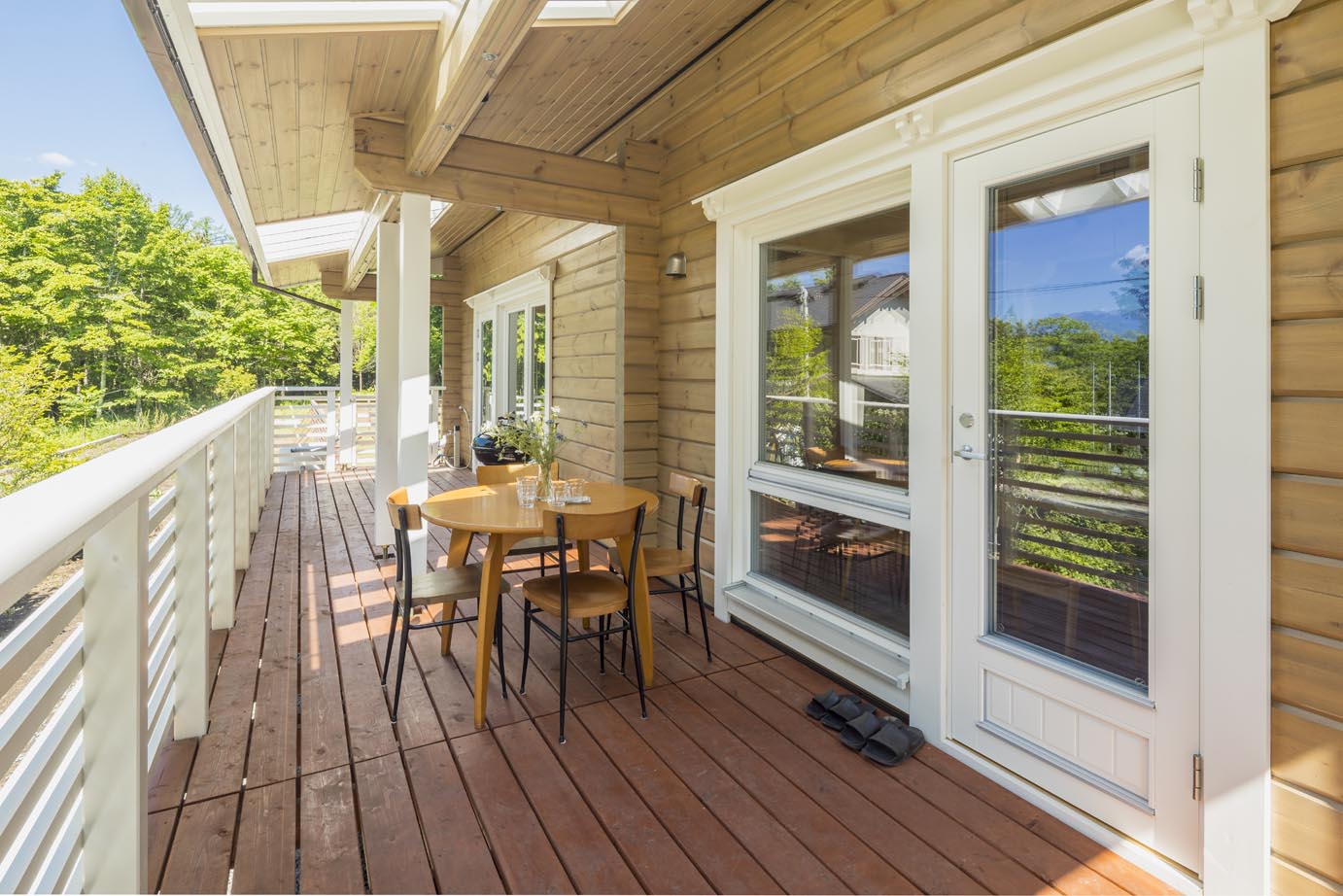 屋根付きテラスにテーブルセットをご用意しています。